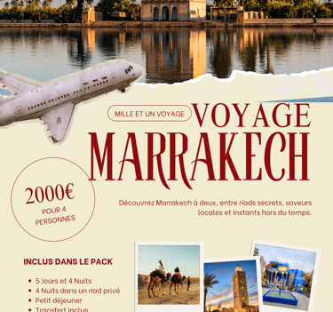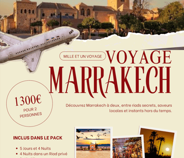 Imaginez un voyage au Maroc qui vous ressemble vraiment. Que vous rêviez d'une escapade romantique, d'une aventure en tribu ou d'un moment pour vous reconnecter à l’essentiel, tout est pensé pour répondre à vos attentes. Chaque profil est unique, c’est pourquoi j'ai imaginé plusieurs façons de découvrir ce pays fascinant. Amoureux de culture, passionnés de grands espaces, amateurs de randonnée ou explorateurs en quête d'authenticité — vous trouverez forcément votre bonheur au cœur du Royaume chérifien.